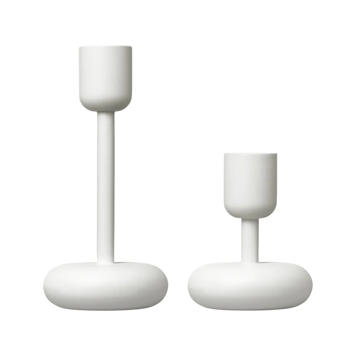 Muotoilija Matti Klenell sai idean Nappula-kynttiläjalkoihin erikoisenmuotoisesta pöydästä ja pöydänjaloista. Klenell loi niistä oman muotoilutulkintansa suunnitellessaan Nappulalle sen tunnusomaisen kapean elegantin jalan ja tukevan pyöreän pohjan. Nappulan persoonallisesta muodosta on tullut modernin pohjoismaisen muotoilun klassikko. Pelkistetyn moderni muoto yhdistyy näyttävästi vintage-elementteihin. Pakkauksessa on kaksi Nappula-kynttilänjalkaa, joiden pituudet ovat 183 mm ja 107 mm. Valkoinen väri tuo esiin kynttilänjalan selkeän ja pelkistetyn muodon. Kynttilänjalat ovat näyttävä pöytäkoriste yksin tai ryhmäksi koottuna. Kynttilöiden lämpimästi kajastava valo luo rauhallisen tunnelman kaikkiin sisustuksiin. Tyylikäs häälahja, syntymäpäivälahja tai tuparilahja. Suositellaan antiikki- ja pallokynttilöitä.