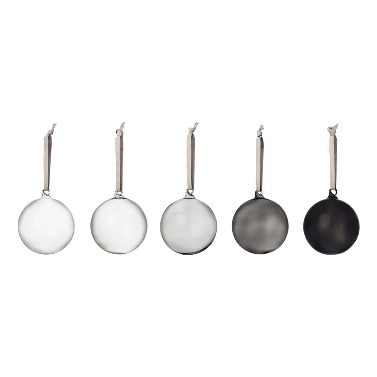 Koristele kotisi suupuhalletuilla lasipalloilla (80 mm). Pallot vaihtelevat eri sävyissä harmaan skaalalla, tuoden tyylikkyyttä kodin sisustukseen. Jokaisessa pallossa on harmaa tekstiilinauha ripustamista varten, ja niihin kuuluu kestävä pakkauslaatikko turvallista säilytystä varten.