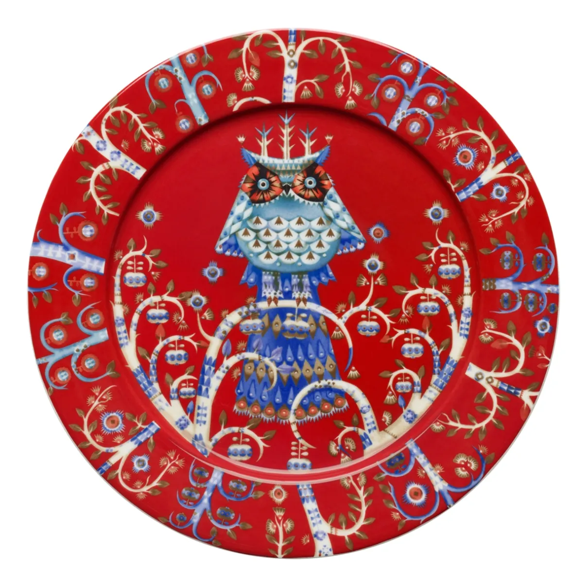 Taika-sarjassa Klaus Haapaniemen fantasiataide ja Heikki Orvolan selkeä muotoilu yhdistyvät ilomieliseksi kokonaisuudeksi. Lumoavan sarjan kuvioinnissa on viitteitä satujen ja tarinoiden rikkaaseen kuvastoon, joka nousee kauniisti esiin pelkistetyssä ja selkeässä muotoilussa. Monikäyttöiset ja kestävät astiat luovat arjen kattauksiin mielikuvitusrikkaan kansanperinteen ja satumaailman värikkyyttä. Monikäyttöinen Taika-lautanen sopii juhla- ja arkikattauksiin. Värikkään pöllöaiheisen kuvioinnin runsaat yksityiskohdat korostuvat lautasen kirkkaanpunaista pohjaväriä vasten ja koristavat myös lautasen reunaa. Yhdistele värejä tai kokoa samanvärisiä astioita näyttäväksi kokonaisuudeksi. Arvostettu lahja. Mikrouunin ja konepesun kestävä.