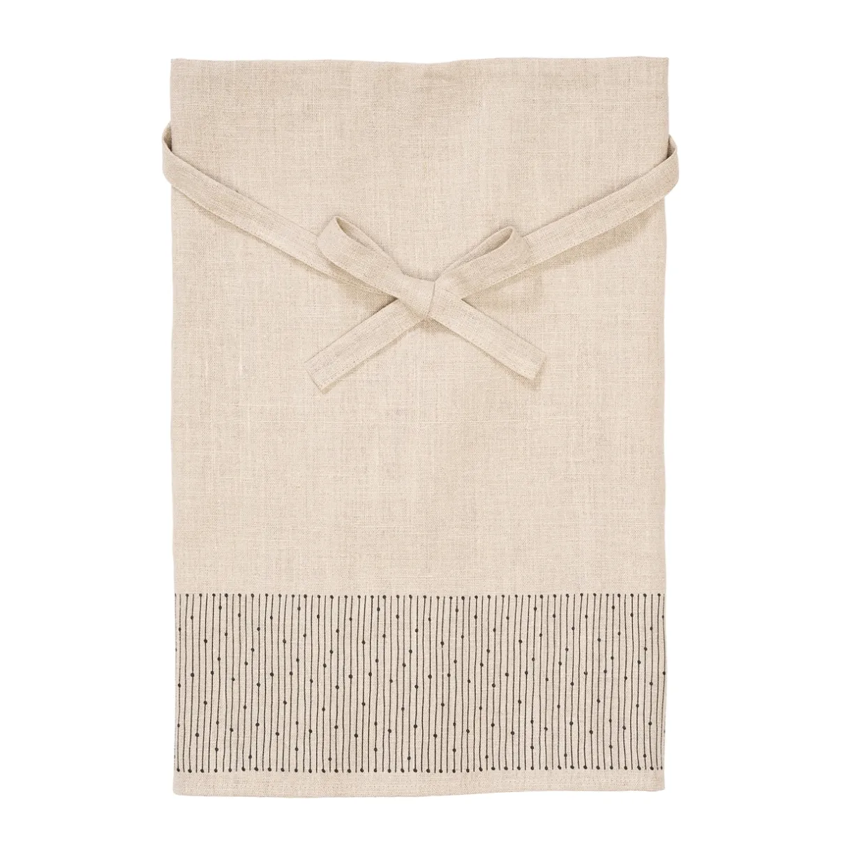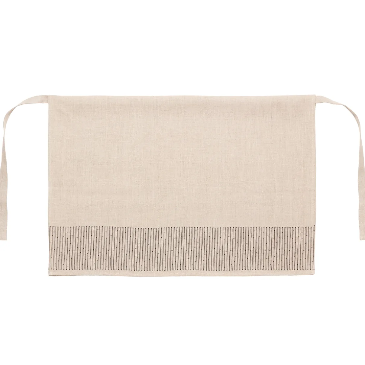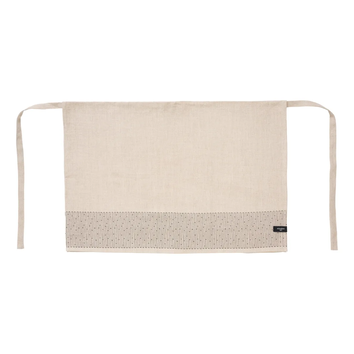 Mainio Sarastus -puoliesiliina soveltuu kaikkiin keittiön askareisiin, ja sitä on helppo käyttää ja säilyttää. Liina suojaa päälle puettuna jauhoilta ja sotkuilta, sen alla kohoavat taikinat, ja sitä voi käyttää myös keittiöpyyhkeenä. 100 prosenttinen Mainio Sarastus – pellavatekstiili on käytännöllinen ja ekologinen valinta keittiöön.