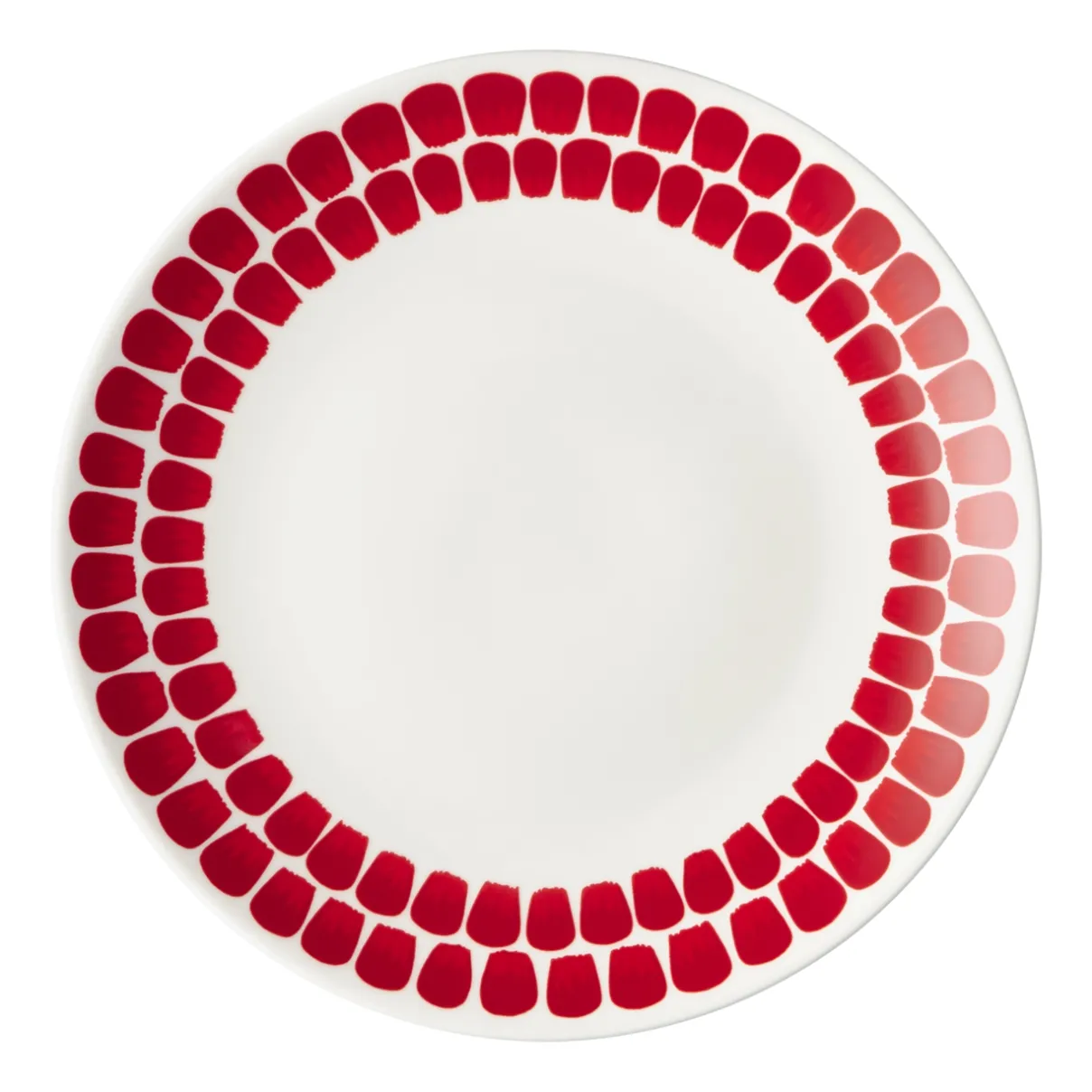 Suomalaisuutta henkivä Tuokio-koriste on saanut tänä jouluna marjaisan punaisen erikoissävyn. Lempeitä pensselinvetoja muistuttava punainen kuvio erottuu edukseen puhtaanvalkoisessa lautasessa. Täysikokoinen ruokalautanen sopii mainiosti sekä arkeen että juhlaan. Sesonkituote.