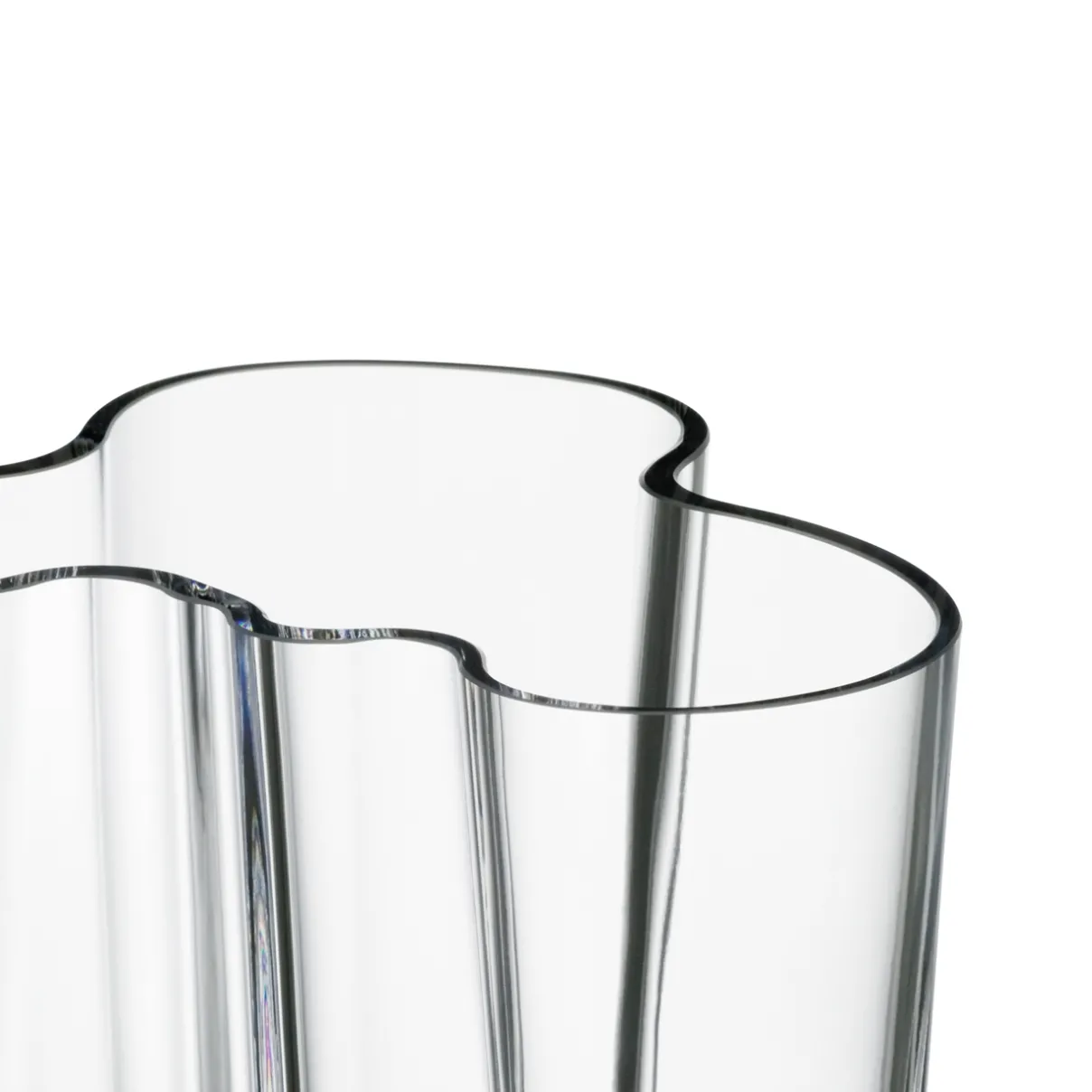 Alvar Aallon luomasta epäsymmetrisesti aaltoilevasta muodosta on tullut yksi modernin pohjoismaisen muotoilun klassikoista Aallon voitettua vuoden 1937 Pariisin maailmannäyttelyyn liittyvän suunnittelukilpailun. Suomen tuhansien järvien inspiroimassa Aalto-maljakossa muoto ja funktio yhdistyvät kokonaisuudeksi. Jokainen lasimaljakko valmistetaan yksittäin Iittalan lasitehtaalla monivaiheisessa valmistusprosessissa. Lasimaljakko saa alkunsa suupuhalluksella, minkä jälkeen se katkaistaan lasimassasta käsin ja hiotaan lopulliseen muotoonsa. Kirkkaasta lasista valmistettu maljakko sopii monikäyttöisen kokonsa ansiosta erilaisten sisustustyylien osaksi. Moderni lasimaljakko tuo kukka-asetelmat kauniisti esille. Tervetullut lahja, joka muistetaan.