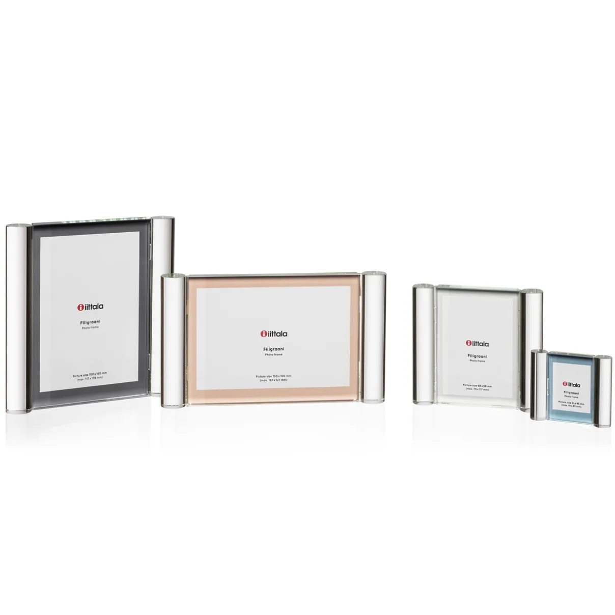 Ranskalaisen muotoilijan Inga Sempén suunnitteleman Filigraani-kokoelman ajattomat lasikehykset soveltuvat valokuville tai rakkaimmille muistoille. Sininen metallitausta on kaunis yksityiskohta yhdistettynä kirkkaaseen lasiin. Luo kokonaisuus eri kokoisista Filigraani-kehyksistä ja nosta esille itsellesi tärkeitä valokuvia, piirustuksia tai muita elämän tärkeitä hetkistä keräämiäsi muistoja. Passikuvakoko. Ajaton lahja ja koriste-esine kotiin.