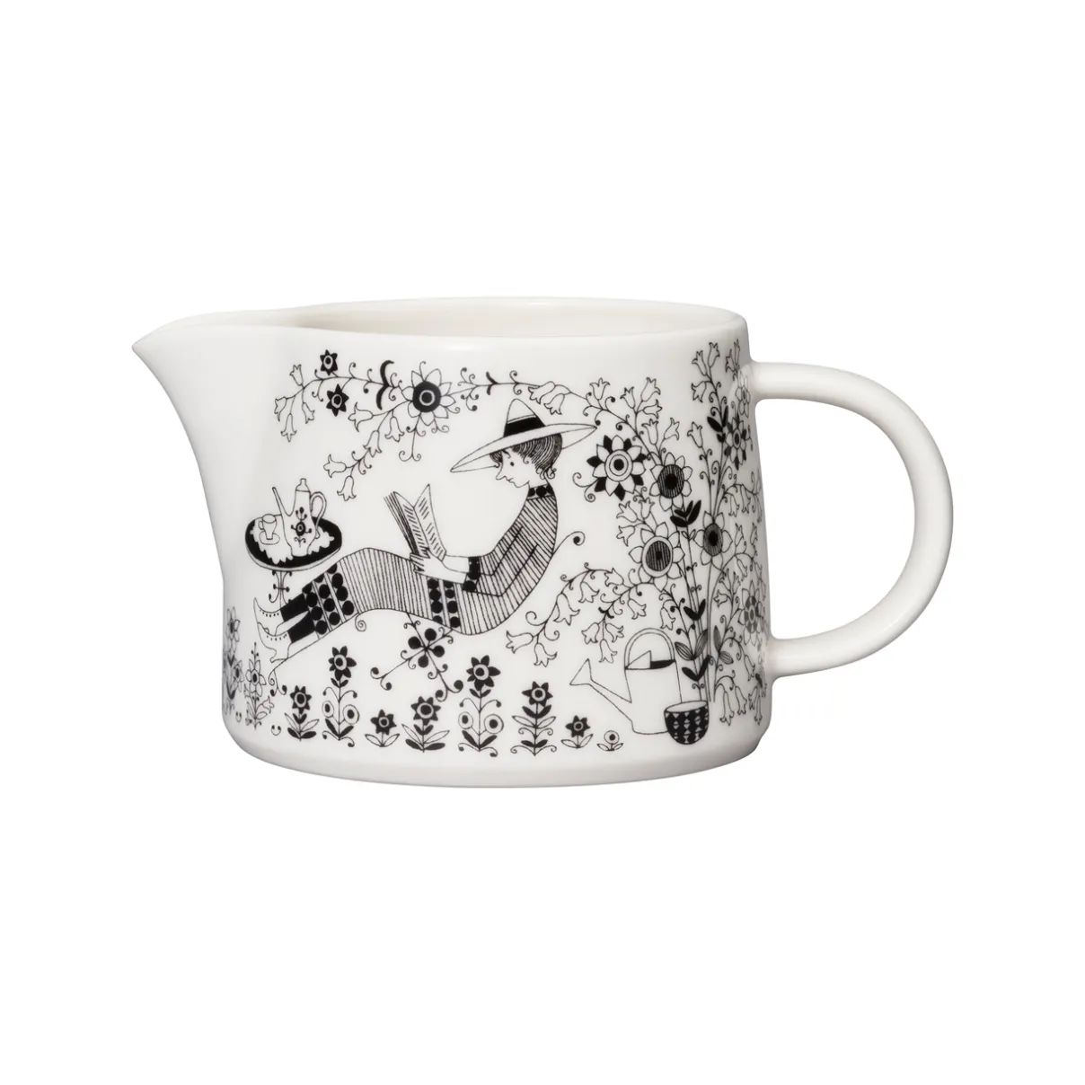 Mestarikuvittaja Raija Uosikkinen suunnittelema Emilia on kuin oodi huolettomille päiville ja onnellisille hetkille. Arabian rakastetuimpiin kuuluva Emilia on yksityiskohtainen mustavalkoinen koriste, joka jatkuu erilaisena sarjan jokaisessa astiassa. 0,35L kaadin sopii moneen kattaukseen ja käy niin kastikkeille kuin kahvimaidollekin.