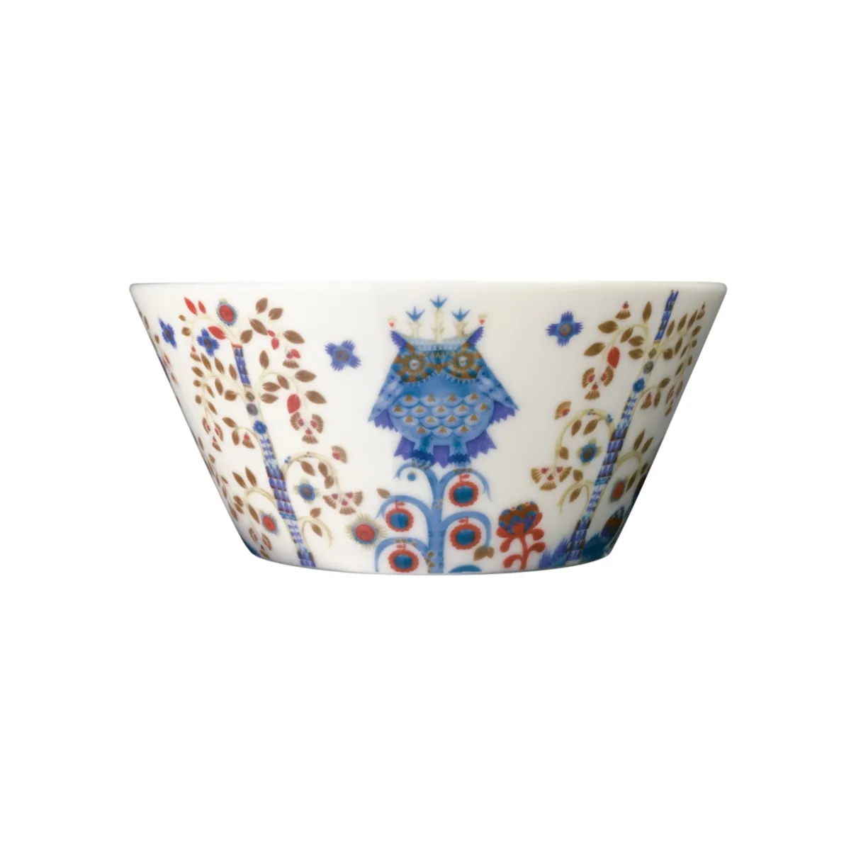 Taika-sarjassa muotoilija Klaus Haapaniemen fantasiataide yhdistyy Heikki Orvolan funktionaaliseen muotoiluun. Mielikuvitusrikkaan sarjan kuviointi ja hahmot ovat peräisin satujen värikkäästä kuvastosta. Monikäyttöiset ja kestävät posliiniastiat tuovat kaikentyyppisiin kattauksiin kansanperinteen ja satumaailman tunnelmaa. Taika-kulho sopii erinomaisesti puuron, myslin, jogurtin, pähkinöiden ja makeisten tarjoiluun. Kulhon valkoinen pohjaväri nostaa värikkään pöllöaiheisen kuvioinnin runsaat yksityiskohdat kauniisti esiin. Mikrouunin ja konepesun kestävä. Yhdistele erivärisiä astioita näyttäväksi kokonaisuudeksi. Tervetullut syntymäpäivä-, hää- tai tuparilahja.