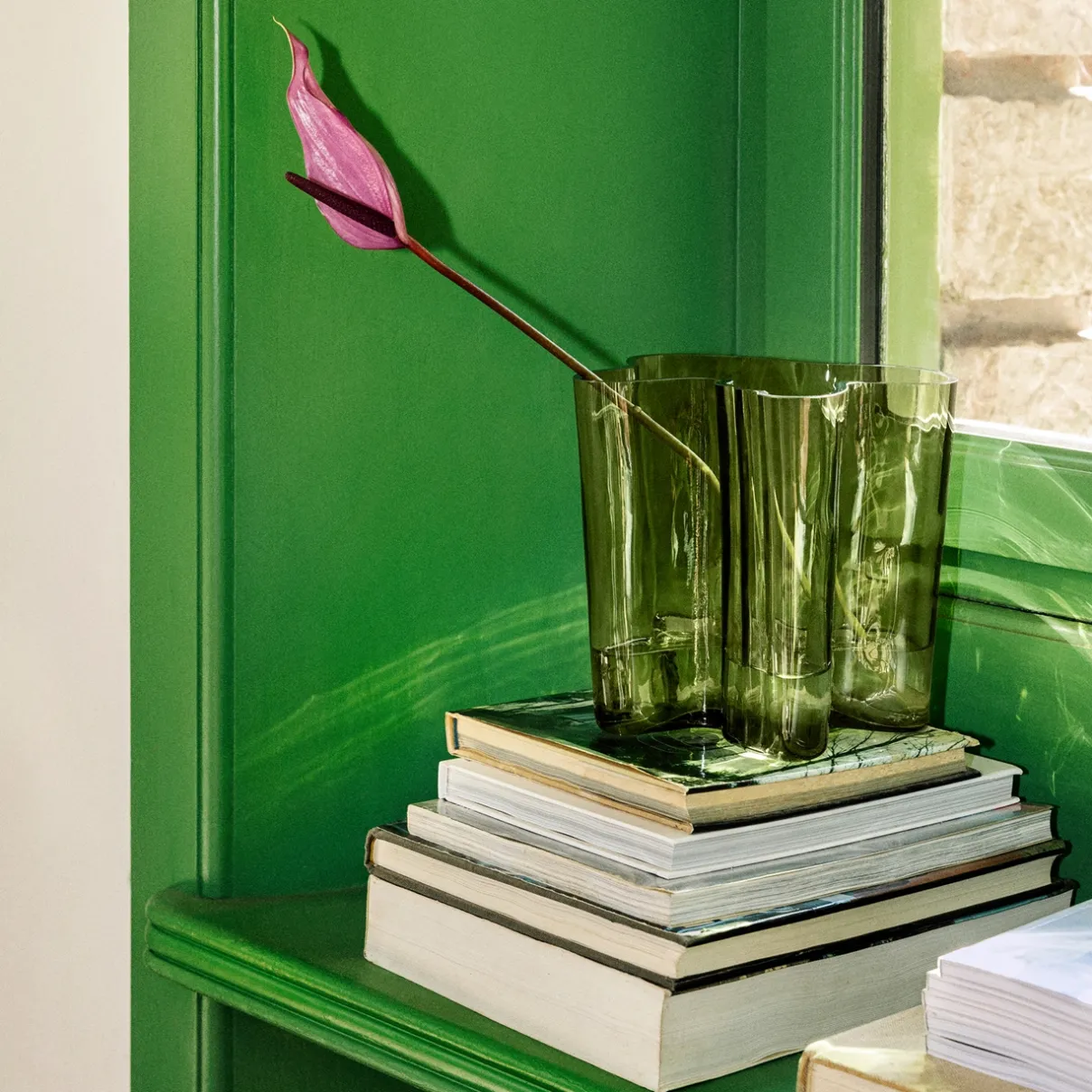 Numeroitu erikoiserä, vain 1000 kappaletta. Tämä 200 mm Aalto-maljakko on valmistettu suomalaisesta hiekasta, joka antaa lasille luonnollisen vihreän sävyn ilman lisäväriä. Suupuhallettu käsin kaiverrettuun puumuottiin Iittalan lasitehtaalla – jokaisessa yksilöllinen pinta ja aidon käsityön jälki. Harvinainen tilaisuus omistaa pala Aallon ikonista muotoilua, suomalaista materiaalia ja perinteistä lasiosaamista.